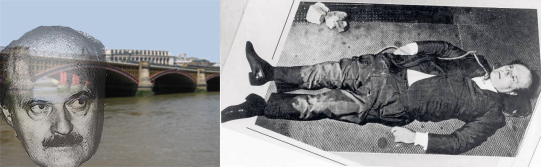 Under Blackfriars Bridge....like Calvi. (P2 called themselves 'frati neri' or 'black friars' geddit?) Notice the all seeing eye on his forehead!