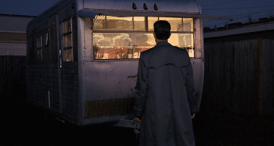 A Winkie (Oz) and Bum behind the wall at Winkies (Mulholland Drive)