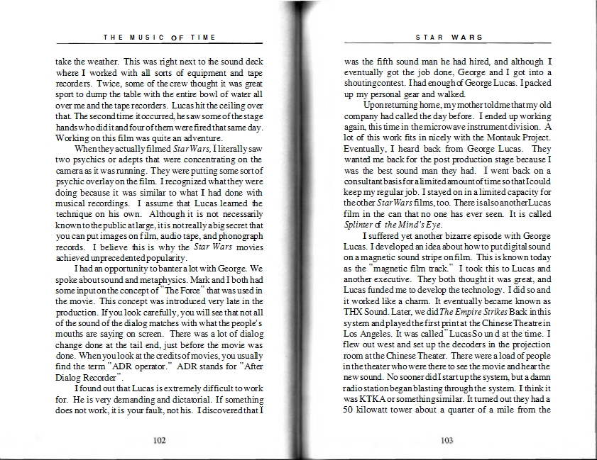 "When they actually filmed Star Wars, I literally saw two physics or adepts (mystery religion imo) that were concentrating on the camera as it was running. They were putting some sort of psychic overlay on the film. I recognized what they were doing because it was similar to what I had done with musical recordings (via Buddah etc)"