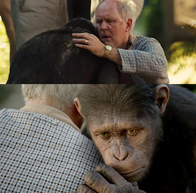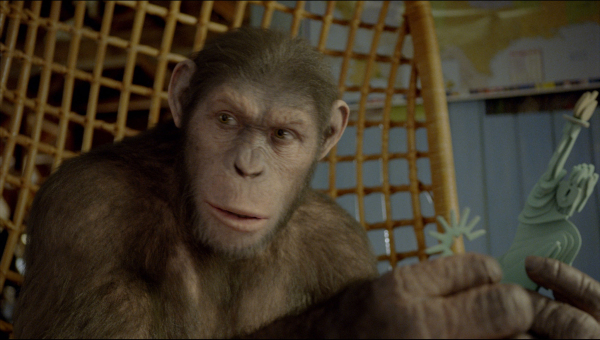 Will begins to take Caesar on excursions to the redwood forest at Muir Woods National Monument, but after seeing a family's German shepherd, Caesar asks if he is a pet. When Caesar questions his identity, Will tells him that his mother was given a drug and that the reason for his intelligence is that the drug affected him while still in the womb. Caesar becomes more aware of his biological identity and begins to view himself as different from his human family.