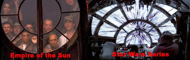 The window and the cockpit of the Millenium Falcon (millenial horus) going into hyperspace-stargate...Spielberg strikes back, the nod to Lucas and his 'Empire' series.