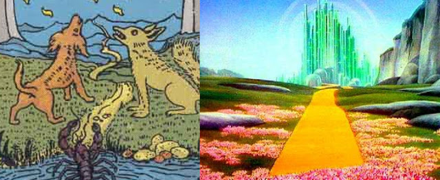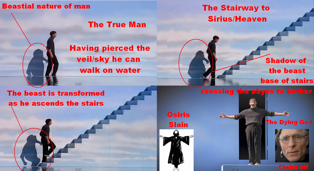 The golden stargate/bridge to Sirius...the apes in the treetops (at the films end) as a visual metaphor for Jacob's ladder.
