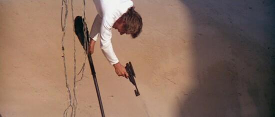 After a running battle with the Soviets, Indiana manages to escape on a rocket sled into the desert; he stumbles into a deserted town, part of a nuclear test site and survives a nuclear detonation by hiding in a lead-lined refrigerator.