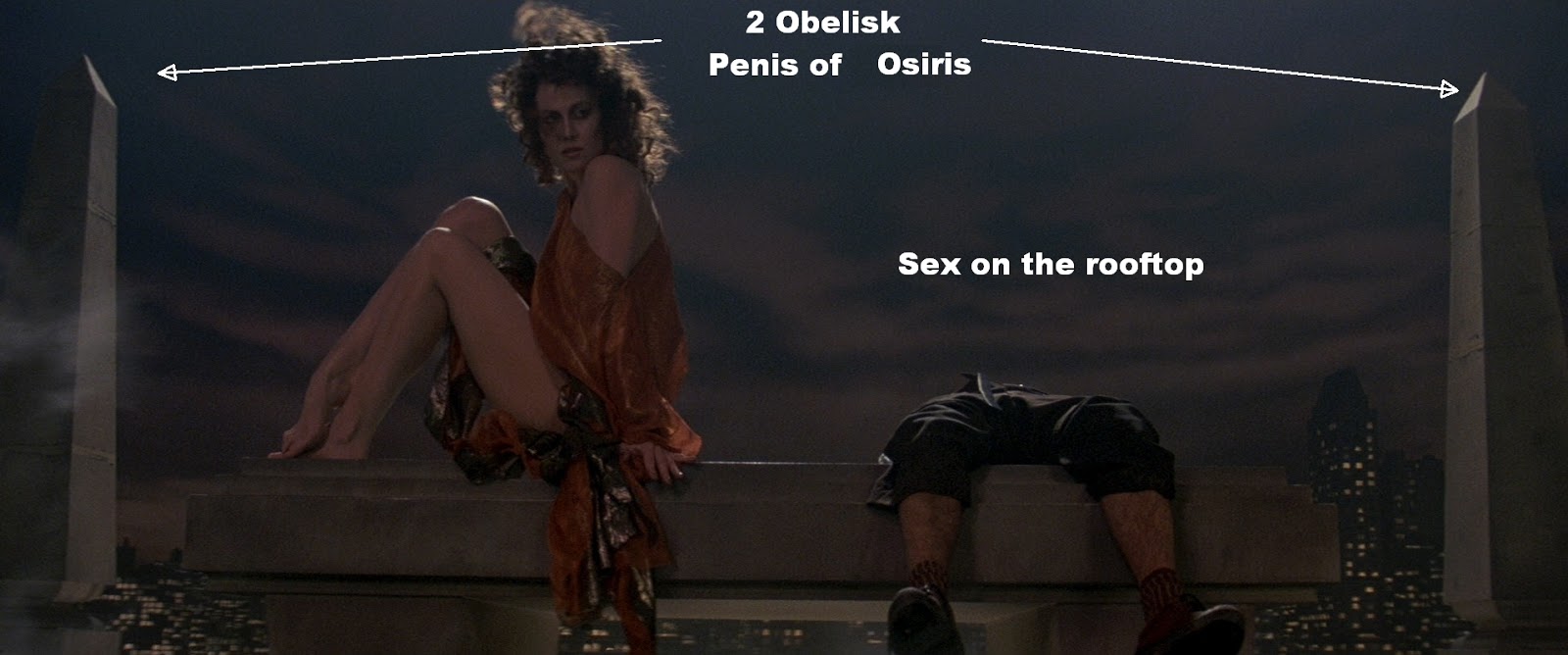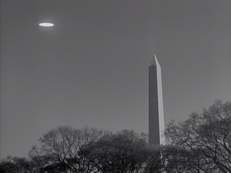The alien craft speeds by the 'Penis of Osiris' (Washington Monument)
