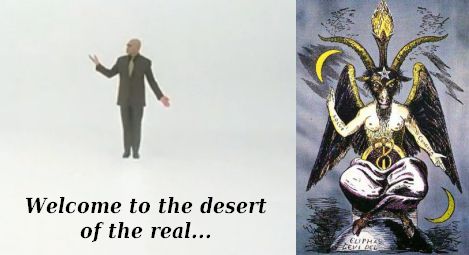 A flipped Morpheus evoking Baphomet and AS ABOVE, SO BELOW (sun & moon)