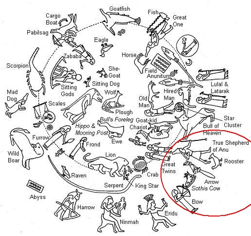Sirius/Isis pursuing Orion (Osiris) through the night sky