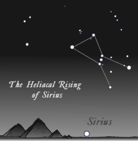The heliacal rising of Sirius is when the star and sun are sufficiently separated so that—for the first time in 70 days—Sirius can be seen on the horizon just before dawn. In the northern hemisphere, this occurs in mid-to-late summer, the hottest part of the year.