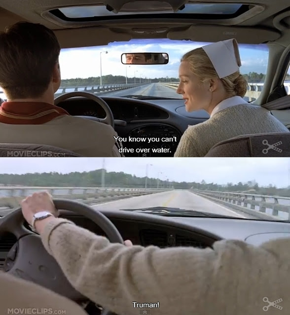 The Truman Show - Crossing the bridge (abyss) to escape town and conquering his innate fear (water).