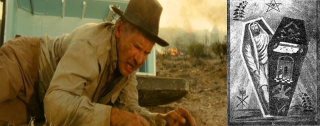Recall his 'coffin escape' (reborn into the light) ala Hiram Abiff (Osiris) from Kingdom of the Crystal Skull (Directed by Brother Spielberg)