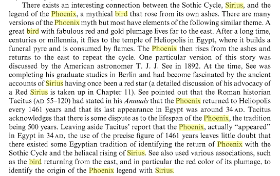We know of the phoenix and its relationship to the sun (Heliopolis/City of the Sun) and Sirius (aka the sun behind the sun)