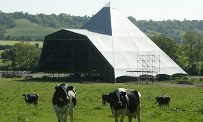 The Glastonbury Pyramid Stage...with its 'illuminated' capstone/benben.