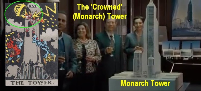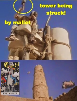 The Tower represents the paradigms constructed by the ego, the sum total of all schema that the mind constructs to understand the universe. The Tower is struck by lightning when reality does not conform to expectation.  (Diane's reveal that she is dreaming, not reality!)