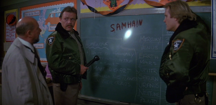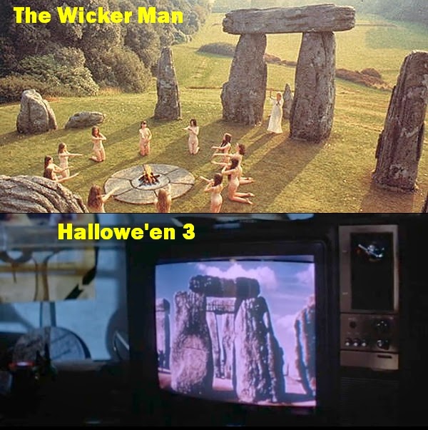 With all the above in mind...it made perfect sense to cast Dan O'Herlihy as the Irish warlock in Hallowe'en 3 : Season of the Witch.  Celtic mythology blatantly getting a heavy airing etc. Aspects of the stones from Stonehenge, are central to the plot and masks. Dick Warlock also features in H3, you might recall that (Dick) Warlock played Michael Myers in Hallowe'en 2.  He was Kurt Russell's stunt double for 25 years and is the father of Baywatch/Society actor Billy.