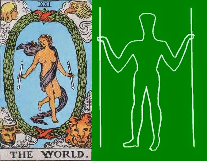 Jesus is sometimes rendered as the figure on The World card #21.