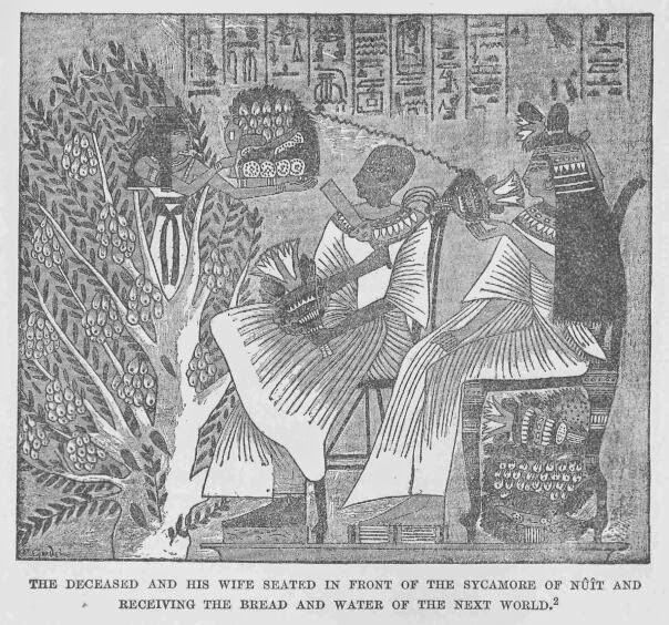 The sycamore specifically was regarded as a manifestation of the goddesses Nut, Isis and Hathor, who was even given the title, "Lady of the Sycamore".  In fact, this title has been interpreted to relate to a specific and particularly old tree that once stood to the south of the Temple of Ptah at Memphis during the Old Kingdom.