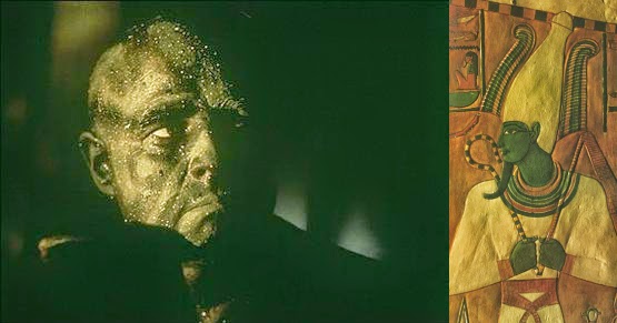 The 'green man' aspects evoking Osiris.