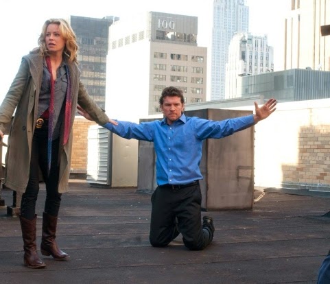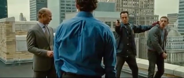 In Man on a Ledge...Worthington adopts the 'crucifixion/hanged man' (tau) pose, as opposed to the traditional 'hands above the head' arrest pose!