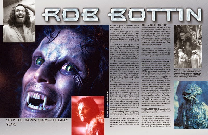 A protege of Rick Baker, Bottin would create the 'were-wolf' effects for the film The Howling.