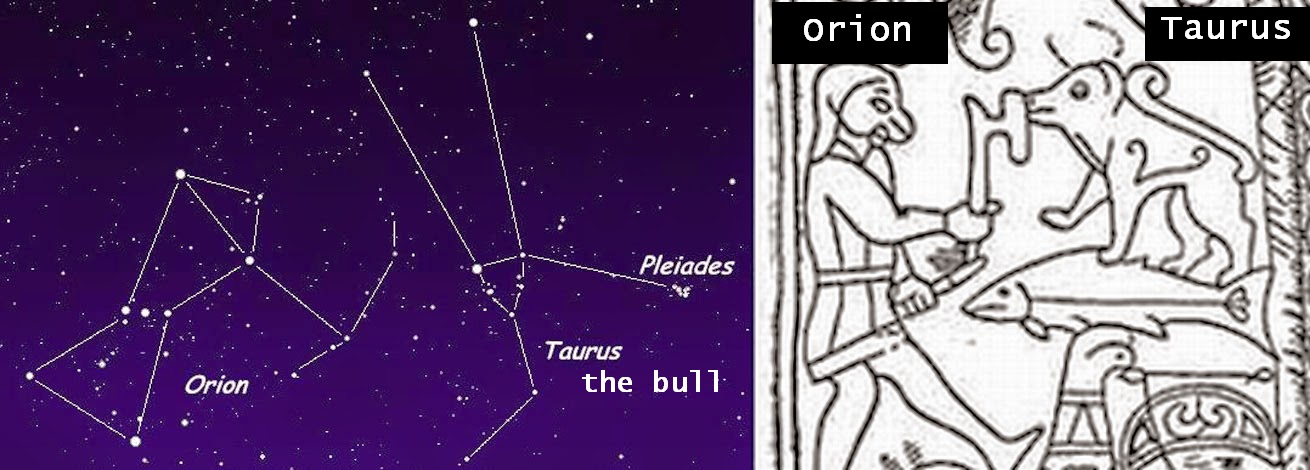 Orion (Osiris) is also termed 'The Hunter'...with his axe/club etc.