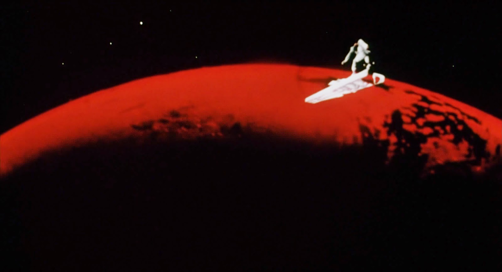 This approach shot lasts much longer than The Thing, but the initial approach is effectively the same.