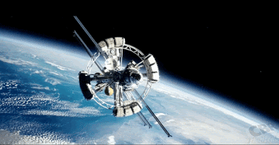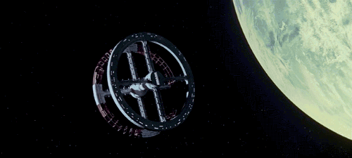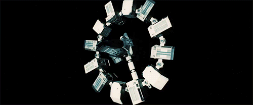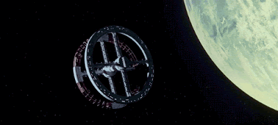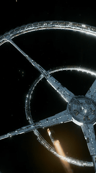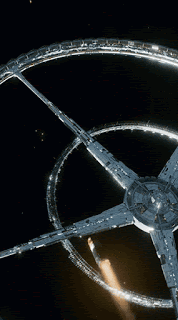 The wheel-like 'gif' below, precedes the docking scene with the Space