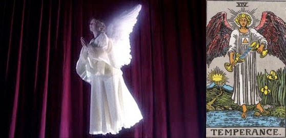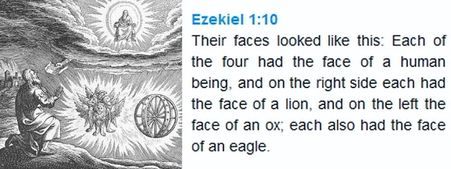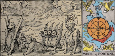 4 winged creatures, Lion (leo), Ox (taurus), Man & Eagle, in corners of the 'Wheel' card