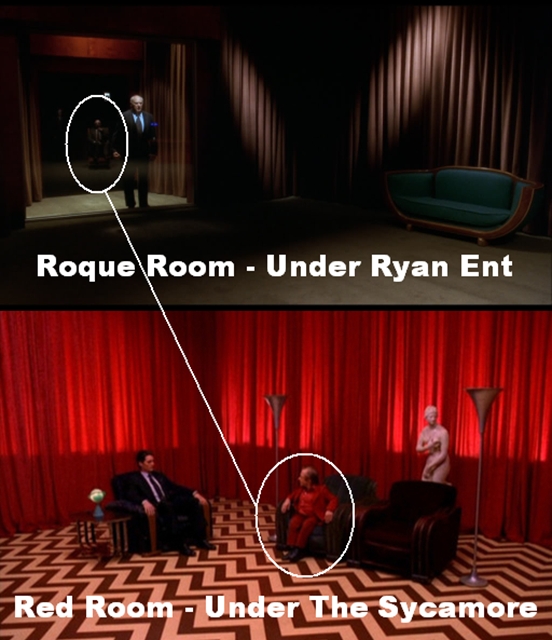 The Glastonberry Grove 'portal' acts as a multiple reference to 'the wheel' (zodiac), the tree of life (and death) and the concept of the 'underworld' (under the sycamore). The Twin Peaks' 'river' likely acts (in one aspect) as the river Styx. The river that formed the boundary between 'earth' and the 'underworld'. The bodies (of Laura, Theresa Banks) are both deposited in the river. Laura is seen floating in the river and washes up next to a large log (stick).