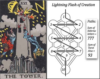 The Fool's '777' lightning pathway (see above, right)...kether to malkuth