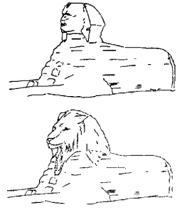 intelligence, wisdom ascending or our shadow selves. The snake (Typhon) from the tree of life/knowledge. The Sphinx on the