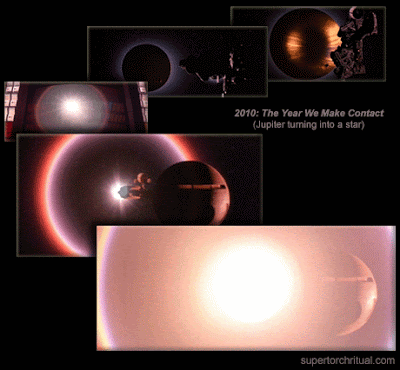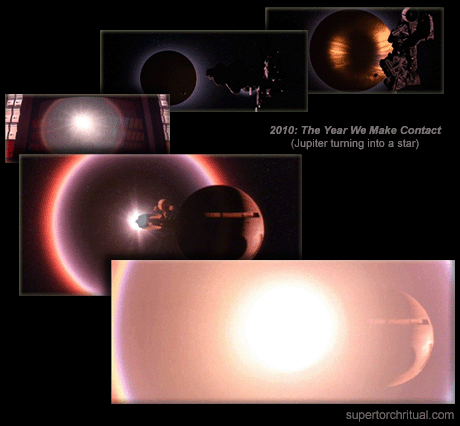 The Leo-nov (rotating section) Jupiter expands (into a star) as they depart, the climax.