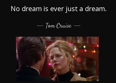 "Wise Up"...Hoffman administers 'morphine' to dying Earl Partridge. How strange it is, to see 'now deceased' Hoffman giving a fatal dose of morphine to Earl, when he himself would die from a suspected heroin (morphine) overdose. Morphine, out of 'morpheus' (god of dreams). Eyes Wide Shut aka Dream Story, Cruise's Vanilla Sky is also dream oriented.