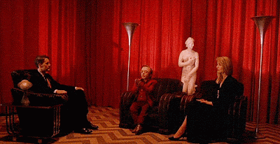 The 'Doves' (white wings) and 'the table' (the formica table) and via Mount 'Twin Peaks' (Olympus). This is one of Lynch's most positive and upbeat endings, in any of his work!