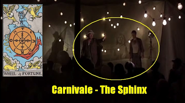 He is very influential in tracking and following Diane and her story...almost like he is directing things from the beyond. There he is in Carnivale (series) next to 'the ferris wheel' as (Carnivale co-owner) Samson Leo-nhardt (a double reference, Samson relates to the lion, Leonhardt means lion-heart) his right-hand man Jonesy, operates the Ferris Wheel, it is clearly one of the shows iconic images. Carnivale seems to have most of the 'wheel' elements that we've been discussing...from a blind man (blindfold) to a snake charmer (on the wheel), a tarot reader etc. Some of the show's mythos relates to 'Masonic' lore.