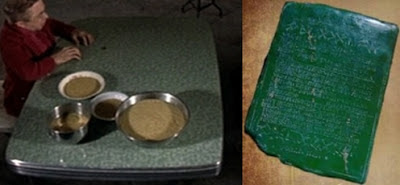 Hermes, the 'as above, so below' green table(t) and Garmonbozia..."For-mica" (mica, rock: "let's rock"). 'Spread a (green) table with ambrosia' (garmonbozia) 'set it by Hermes'.