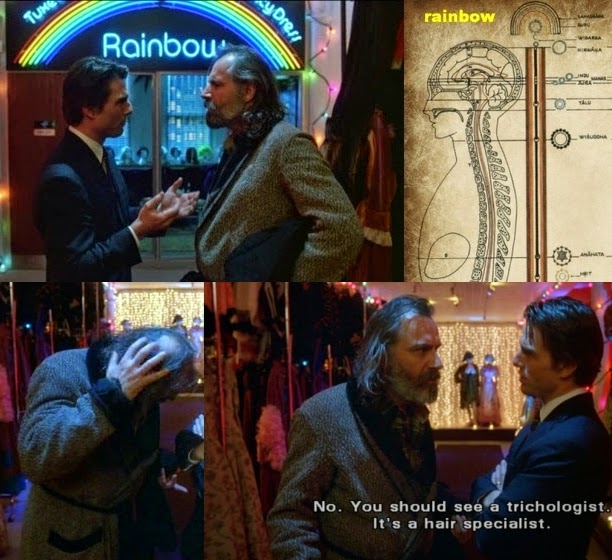 Yup...it all fits, Greek mythology, again! Garmon-ambrosia...and lightning-bolt 'ambrosia scoffing' Zeus. Not directly relating to the above scene, but it's not 'ambiguous' (as the above wiki text states, imo) re: 'mix the rosy-red nectar', it is likely a rosi-crucian (rose cross phenomenon, we get a 'blue rose' in FWWM) aspect, relating to enlightenment, as in, "mix the nectar, for the purposes of the rosy-red cross". A spiritual transformation, to rise (rose, past tense) from the cross, 'crucified' (base ignorance) to 'resurrected' (enlightenment), from consumption of the nectar/ambrosia, which may be a metaphor for 'wisdom/knowledge'...leading to transformation. I've covered Lynch and the 'rosicrucian' angle a few times before, particularly Blue 'rose cross' Velvet & Peaks.