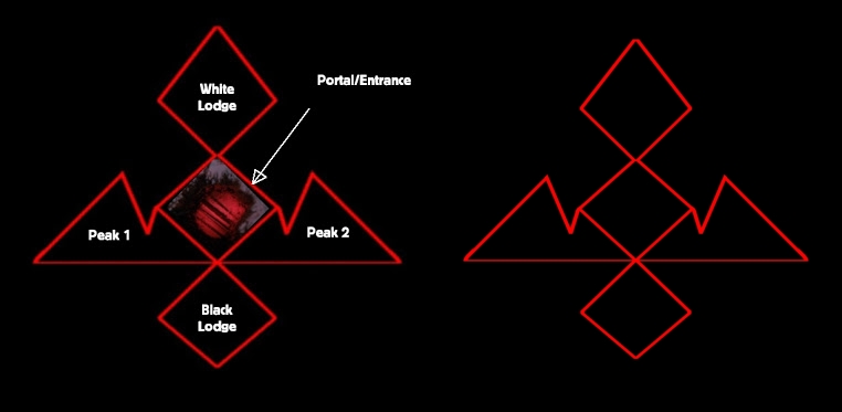 The Twin Peaks 'lodges' dealt with a 'white lodge' (good/heaven) and a 'black lodge' (evil/hell).