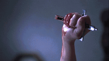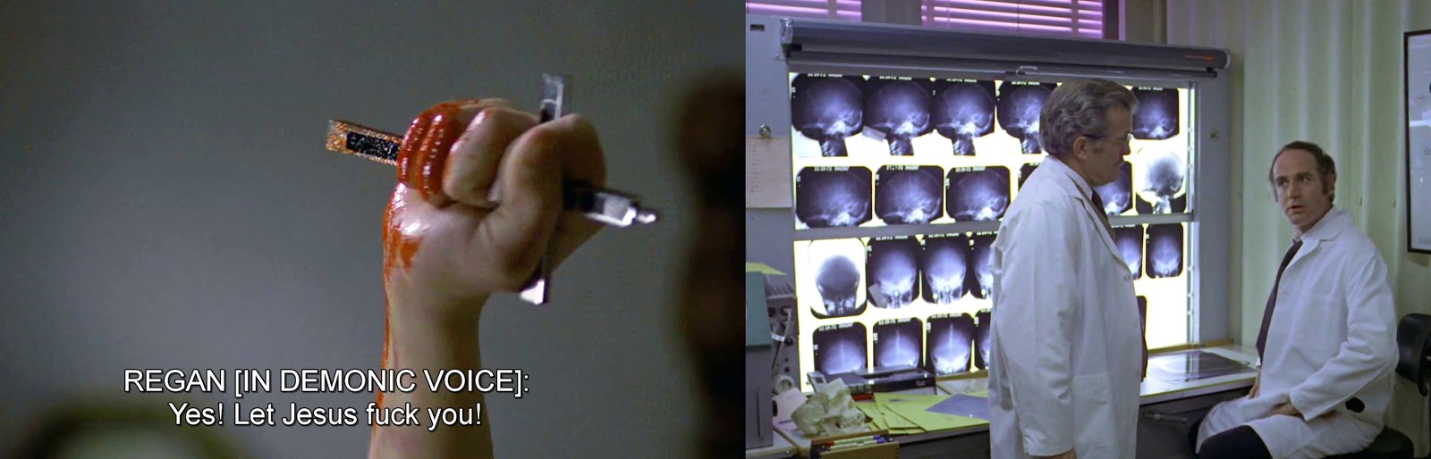Original film, Regan stabbing herself 'sexually' with the crucifix, the 'bloody red/rose cross'.