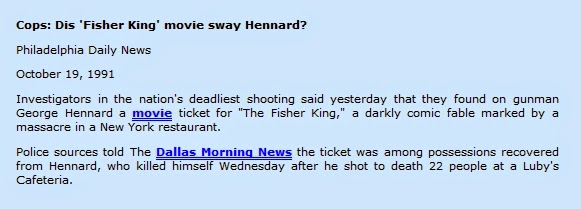 What Terry revealed was that the murders attributed to the Son of Sam, the Manson Family, and numerous other interconnected killings (including possibly the Zodiac murders) were not what they appeared to be. While these killings appeared to be the random work of serial/mass murderers, they actually were contract hits carried out for specific purposes by an interlocking network of Satanic cults .....In other words, these were professional hits orchestrated and disguised to look like the work of yet another 'lone nut' serial killer. Which is, of course, exactly what Henry claimed his crimes to be, several years before investigative journalist Terry published his convincingly documented work. There's Something About Henry by David McGowan
