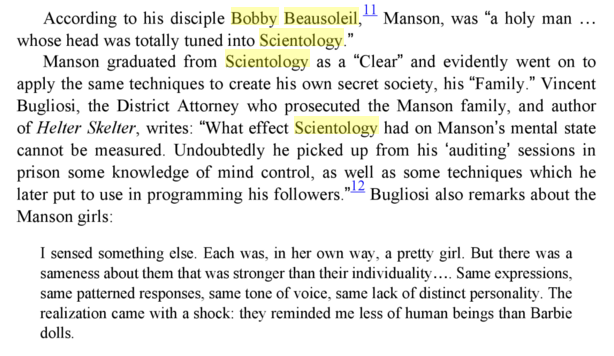 At Berkowitz's home the police found the telephone number of the Fort Harrison Hotel in Clearwater, Florida, Scientology's main secret level training center. Berkowitz explained to the police, that the Son of Sam cult was an escapee from Scientology, though, there is no proof of David personally being close to Scientology.