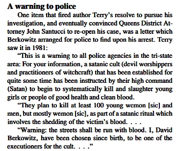 "I, David Berkowitz, have been chosen since birth, to be one of the executioners for the cult"