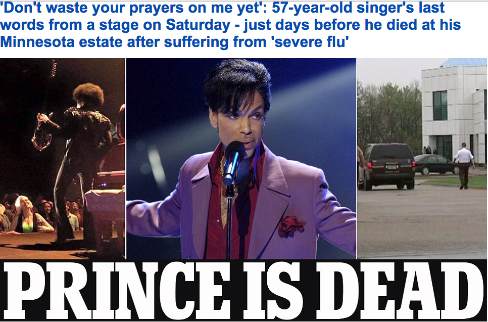 Then the 'purple one' goes and dies...Royal Prince 'deceased' and on the Royal Queen's 90th birthday.