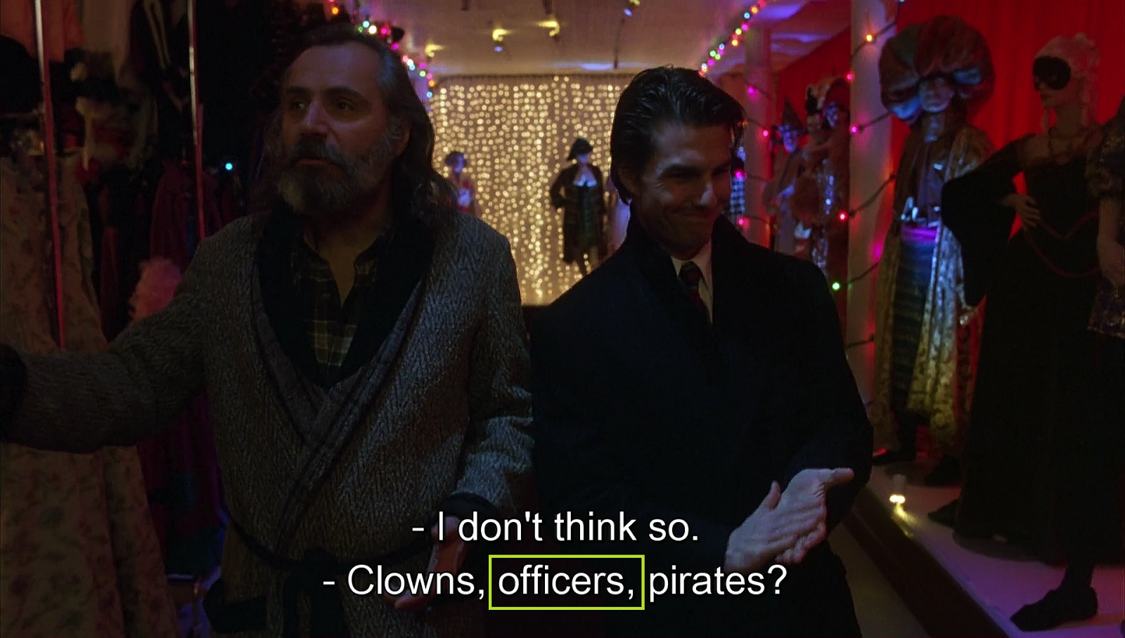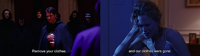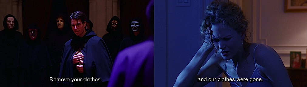 We see visuals of this via Bill's fantasies and internal projections. The Naval Lt (second instance) is given via Alice's 'dream' recollection, after Bill returns from the elite orgy.