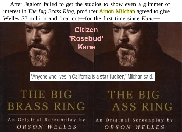 Hollywood programmer, Zionist 'Mossad 9/11' Milchan is referred to as the 'star-fucker'. Likely implying anatomically. Ahem.