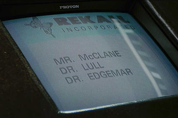 The butterfly in the Rekall advert (subway train screen) and the 'memory implanters' Rekall screen.