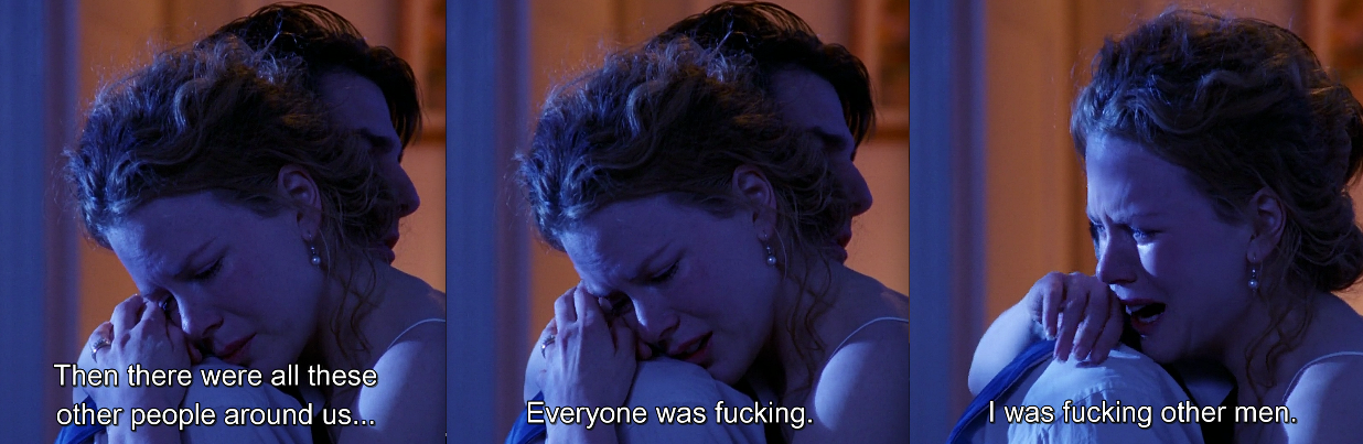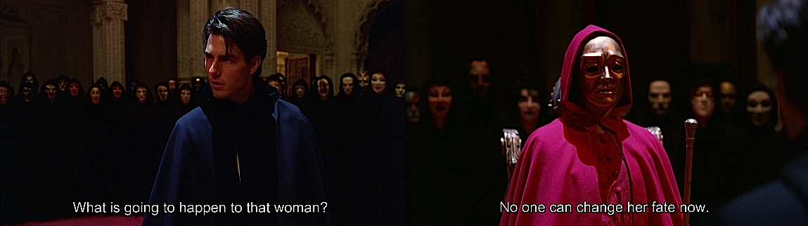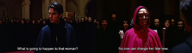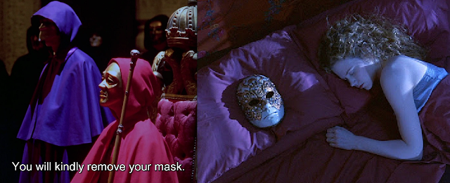 Early hours (4 am), following the elite orgy - Bill returns and disturbs Alice who recalls a "so-called" dream she was having. Dialogue references here are clearly familiar. A dream that is (effectively) a retelling of the orgy that Bill just attended.