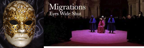 (Monarch) Eyes Wide Shut (Dream Story) - with 'butterfly inlaid' mask, heavily employs the color purple! The monarch is the only butterfly known to make a two-way migration (migrations, and literally) as birds do, navigating via the sun and an internal brain compass.