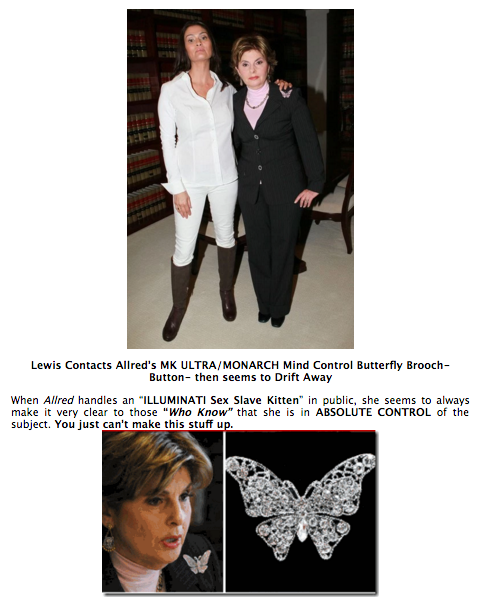 Why does her lawyer/attorney Gloria 'handler' Allred have the butterfly on her lapel!?