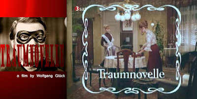 In support of the idea that both Alice and the Rainbow Fashions (Lolita) attend (or who are at least symbolically connected to) the Somerton elite orgy - can be gleaned from Wolfgang Glück's (1969) TV/film Traumnovelle (set in Venice, as per book). In Glück's TV/film, the costume girl (below right, Pierrette, a female Peter), Fridolin's/Bill's wife (Albertine/Alice) and even the recently bereaved Marianne (EWS, Marion Nathanson) are all seen at the masked ball, as is the 'redeemer' woman (EWS, Mandy). "Peter Grenning" (Pierre) is the initial name given by Bill (to Milich) at the Rainbow Fashions entrance.