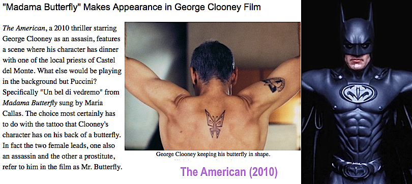 George 'Mr (Madame) Butterfly/Batman' Clooney. Assassins, Puccini, Prostitutes and Butterflies.