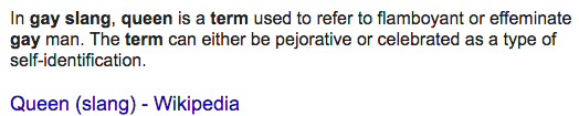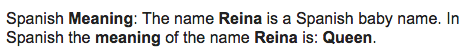 Reina - means "Queen" (as in gay queens).